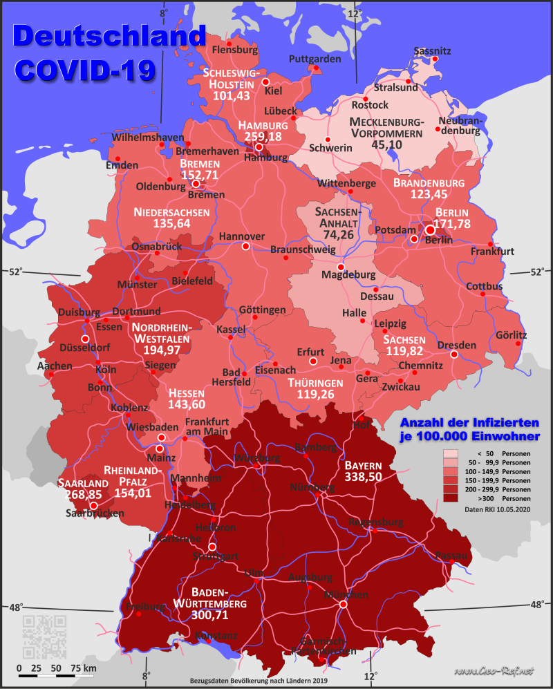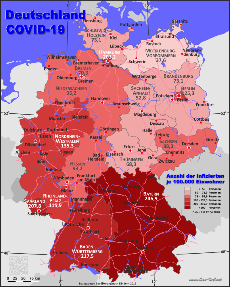 vielmehr seine Statistiken verifizieren .... 21.03.2020 - Wieder Wunder in NRW und diesmal Hamburg - eine Zuwachsrate von 1,29 oder gar 0,17 sollten patentiert werden - dort ist die Krise vorüber? - Eher nicht - eher kommt eine neue auf - die Krise der Berichterstattung und Zahlenkosmetik. Anderenfalls könnte man die gesundheitliche Krise in diesen beiden Ländern fast für beendet erklären. 20.03.2020 - Für einen 34 Stunden Berichtstag ist der Zuwachs recht gering - aber man kann hoffen, dass wieder eine Regelmäßigkeit in die Berichterstattung kommt. Neu ist seit einigen Tagen auch die geo-referenzierte Auswertung nach Kreisen, die das RKI ESRI-basiert und analog der Auswertung der Johns Hopkins Universität aufgebaut ist. EIn schönes Beispiel georeferenzierter Datenauswertung. 19.03.2020 - Die